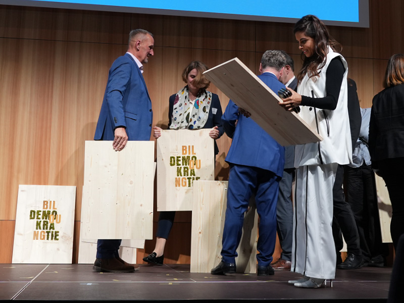 Doch was bietet ein Unternehmen an, wenn es am Tag der Demokratie die Türen öffnet und sowohl die Belegschaft als auch die Teilnehmenden dazu einlädt, sich gemeinsam mit dem Thema Demokratie zu beschäftigen? Mit dieser Frage kam die Unternehmensführung des bfw auf die Salzschmie.de zu und bat um eine Idee, um die Menschen in eine Diskussion zu bringen, bestenfalls gepaart mit einer Aktion. Aus der anfänglichen Konzeption hat sich über die Wegstrecke der Entwicklung eine komplette Kampagne entwickelt, die die Demokratie in allen Standorten des Konzerns buchstäblich wachsen lässt. Demokratie und Bildung funktionieren nur, wenn man selber aktiv wird, sich einbringt und intrinsisch handelt. Genau diesen Punkt haben wir herausgearbeitet und auf eine Aktionsebene implementiert, die auch nach dem Tag der Demokratie noch in allen Standorten des bfw nachwirken wird. Der finale Kampagnen-Slogan „Haltung zeigen – Demokratie leben!“ bringt es letztendlich auf den Punkt: Demokratie muss täglich gelebt werden durch respektvollen Umgang, verantwortungsvolles Handeln und die Partizipation einer und eines jeden Einzelnen. In den Bildungsstätten des bfw werden täglich fachliches Know-how sowie entscheidende Softskills vermittelt, die die soziale und politische Haltung fördern sowie den Wert der eigenen Meinung bewusst machen und stärken. Bildung schafft Persönlichkeit und festigt den Mut, Haltung zu zeigen. Die Basis einer gelebten und starken Demokratie sind gut ausgebildete Menschen.