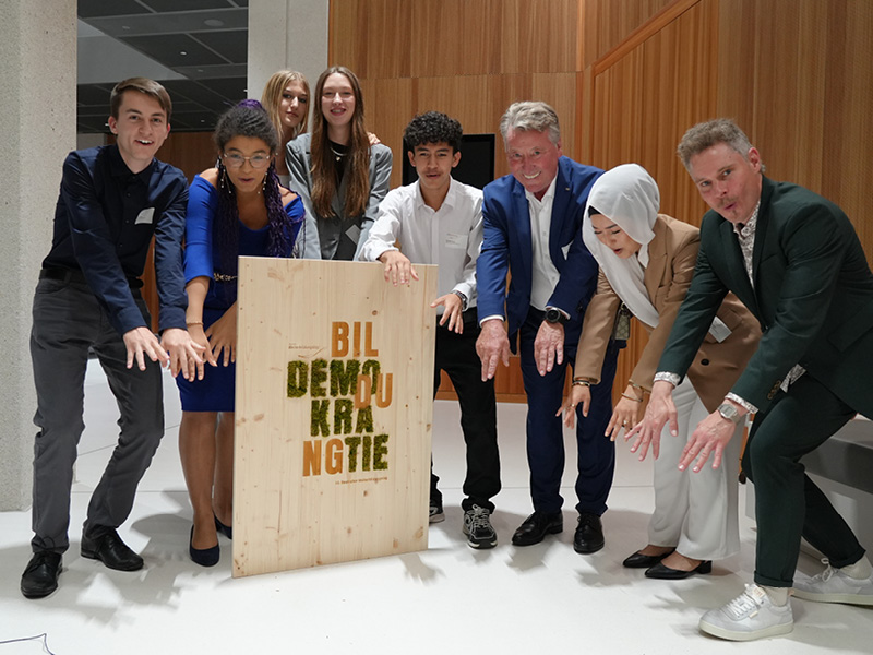 Doch warum haben wir Moos gewählt? Weltweit gibt es rund 16.000 Moosarten. Die große Vielfalt dieser Pflanze spiegelt auch die Diversifikation unserer Gesellschaft wider – und ist ebenso ein Sinnbild der gelebten Demokratie. Moos ist extrem widerstandsfähig gegenüber äußeren Einwirkungen, es braucht ebenso wie die Demokratie ausreichend Pflege, um zu wachsen, sich zu stabilisieren und seine schützenden Eigenschaften zu entfalten. Es liegt folglich in unser aller Händen, dass beides nicht braun wird. Das Moosboard soll jeden Tag daran erinnern: Demokratie ist eine zarte Pflanze, die stetig gepflegt werden muss. Über Bildung säen und stabilisieren wir in unserer Gesellschaft das Grundverständnis einer lebendigen und starken Demokratie.